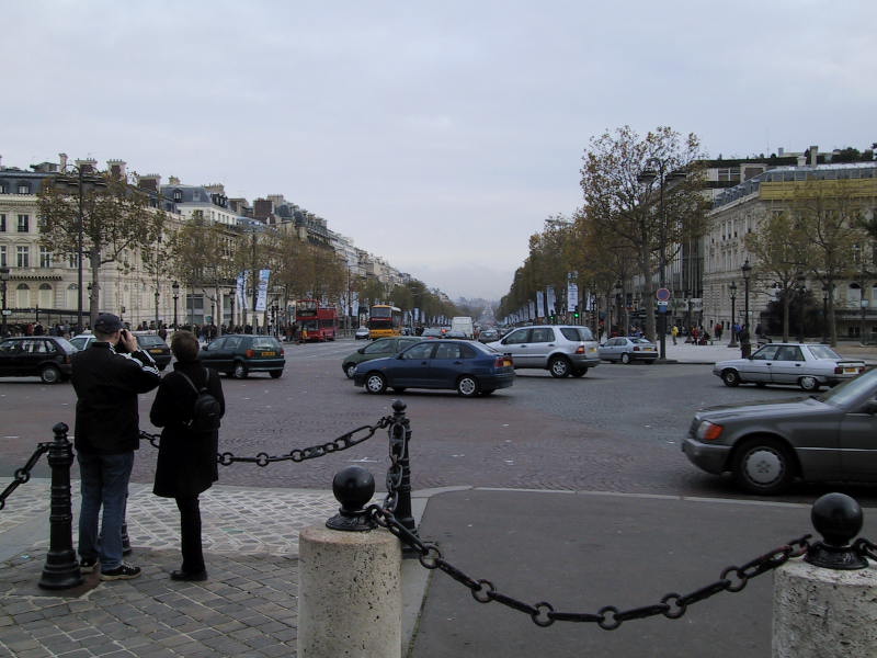 Avenue des Champs Elysées, depuis l'Arc de Triomphe à Paris.