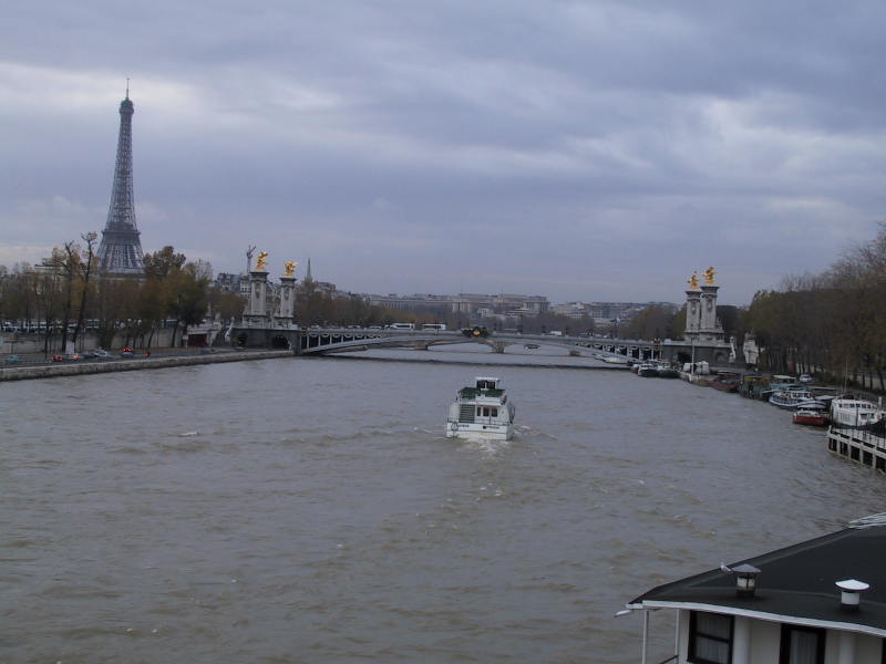 La Seine, le Pont Alexandre III et la Tour Eiffel, depuis le Pont de la Concorde, côté place de la Concorde à Paris